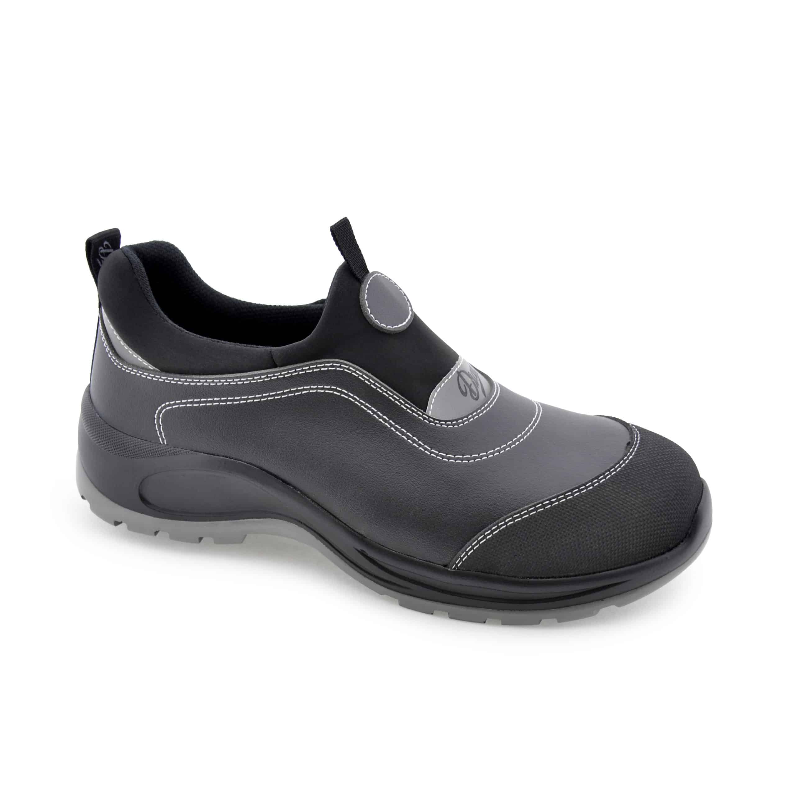 S3S = calzado de seguridad con puntera resistente a un choque de una energía equivalente a 200 J y a una compresión de 15 KN, parte trasera cerrada, antiestático, absorción de energía en la zona del tacón, resistencia del empeine a la penetración y absorción de agua, resistencia a la perforación de la planta no metálica tipo PS, suela con resaltes, resistencia al deslizamiento sobre baldosa y NalS..